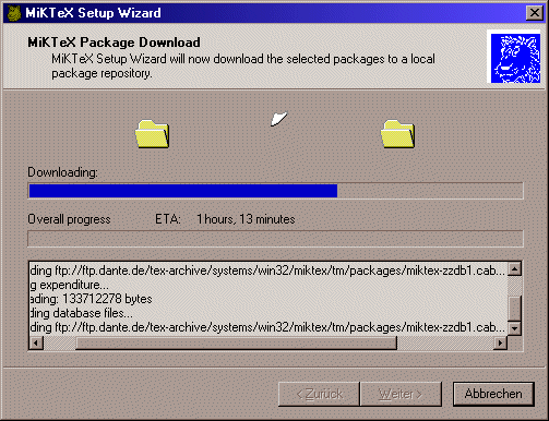 Je nach Verbindung und Download-Größe ein paar Tassen Kaffee trinken und am Ende auf "Weiter >" klicken und dann auf "Finish".