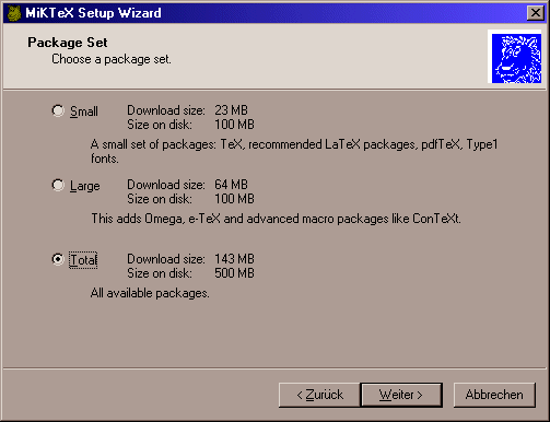 3. Je nach Bedarf auswählen, welches Paket heruntergeladen werden soll und auf "Weiter" klicken: