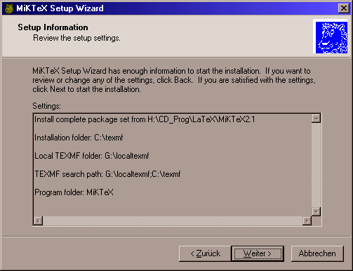 15. "Weiter >" anklicken und der lokale texmf-Ordner kann eingegeben werden: