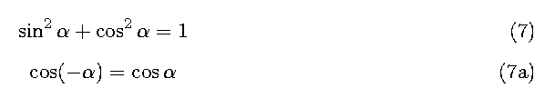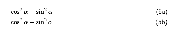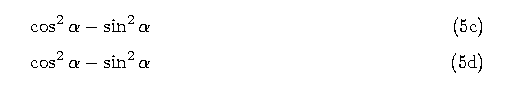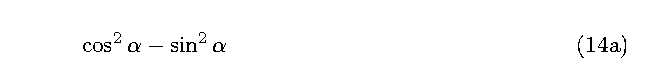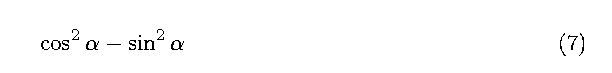 \cos ^2 \alpha - \sin ^2 \alpha \deqreqno[0pt]{Demo0}\nonumber