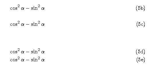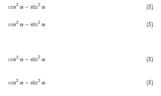 \cos ^2 \alpha - \sin ^2 \alpha \reqno{Demo1}\label{Demo6}