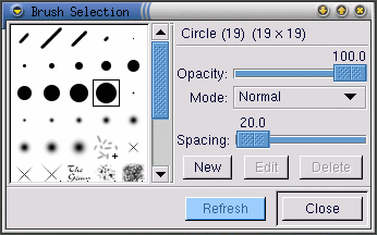 Klicken Sie auf den aktiven Pinsel in der Toolbox, um das Dialogfeld Brush Selection anzuzeigen. Das Dialogfeld Brush Selection ist in Abbildung 9-5 dargestellt: