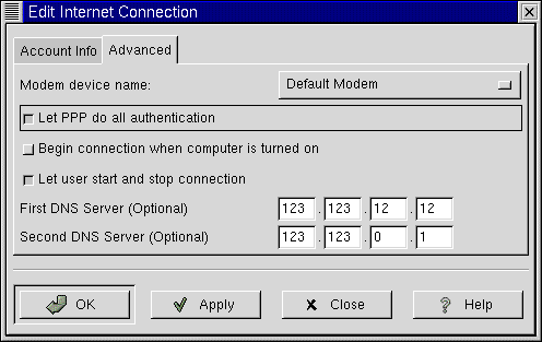 Sowohl GNOME als auch KDE bieten Ihnen nützliche Tools für das Einrichten und Bearbeiten von PPP-Accounts bei Internet-Dienstanbietern. Diese Tools erleichtern Ihnen das Einrichten der Verbindung mit dem Internet beträchtlich - in vielen Fällen benötigen Sie lediglich einen vorhandenen Internet-Zugang, ohne Ihr System groß konfigurieren zu müssen.