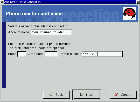 Im Dialogfeld Phone number and name (siehe Abbildung 6-6) müssen Sie dann den gewünschten Namen für Ihren Internet-Zugang und die Telefonnummer für die Einwahl bei Ihrem ISP eingeben. Normalerweise handelt es sich dabei um eine ganz normale Telefonnummer ohne spezielle Vorwahl.
