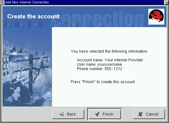 Im daraufhin angezeigten Dialogfeld Create the account (siehe Abbildung 6-8) können Sie die aktuellen Einstellungen für Ihren Internet-Zugang überprüfen.