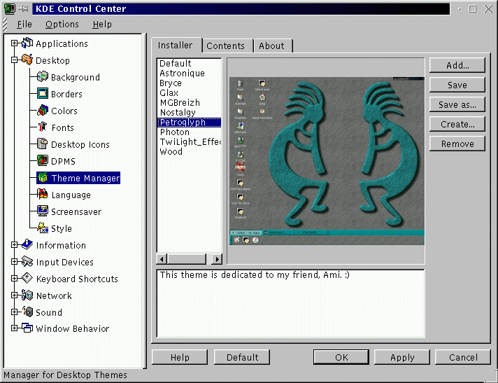 Durch das Verwenden eines anderen Themas können Sie das Look and Feel Ihrer Kontrollleiste, Ihrer Buttons und Menüs ändern. Sogar ein passendes Hintergrundbild ist in den meisten Themen schon enthalten.