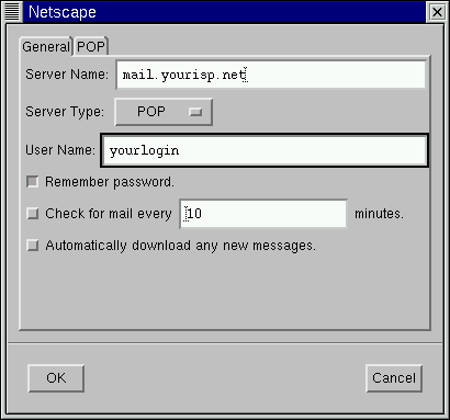 Server Type - Wählen Sie in dieser Dropdown-Liste POP, MoveMail oder IMAP aus. Beachten Sie bitte in diesem Zusammenhang, dass nicht alle Internet-Dienstanbieter alle Servertypen unterstützen. Auch hier erhalten Sie alle erforderlichen Informationen bei Ihrem ISP.