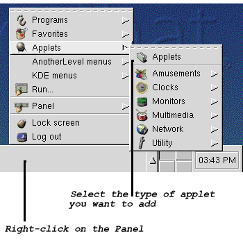 Klicken Sie mit der rechten Maustaste auf das Panel, und wählen Sie dann Applets aus (siehe Abbildung 2-5).