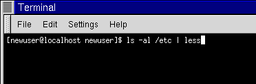 Es posible enviar la salida a la utilidad less. Conocido como paginador, less, (como more) le permite ver las informaciones en una página (o en una pantalla) a la vez.