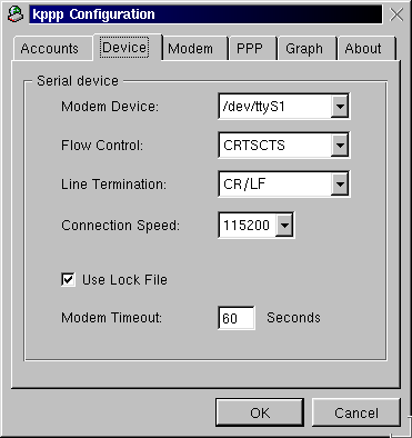 Use Lock File está activado por defecto. Esto significa que Kppp bloquea el dispositivo mientras esté conectado -- impidiendo a otros que usen el modem.