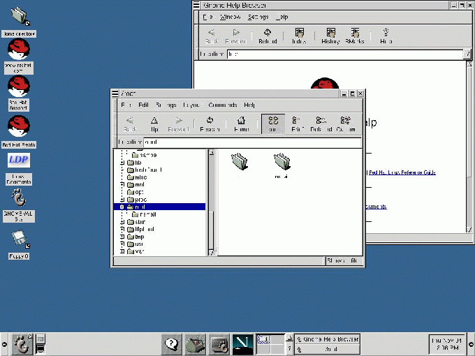 Après avoir démarré le système X Window, vous découvrez un bureau semblable à la Figure 1-2 dans GNOME ou à la Figure 1-3 dans KDE.
