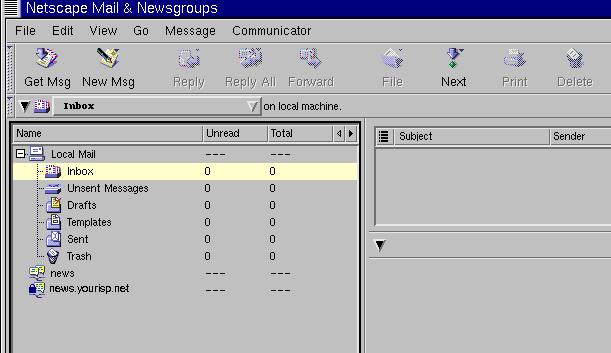 Après avoir configuré vos comptes dans Communicator, vous pouvez commencer à utiliser Messenger pour envoyer et recevoir des messages de courrier électronique et de groupes de discussion (reportez-vous à la la section intitulée Utilisation de Messenger pour lire des groupes de discussion pour savoir comment configurer vos préférences concernant les groupes de discussion).