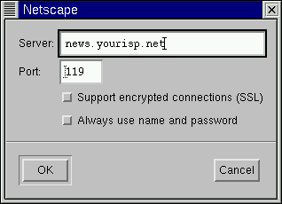La seconda opzione farà si che Messenger vi richieda il vostro nome utente e la vostra password prima della connessione al server news. Questo può essere utile nel prevenire che utenti non autorizzati accedano ai newsgroup attraverso il vostro account.