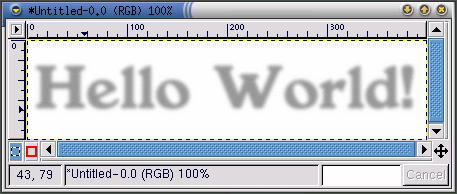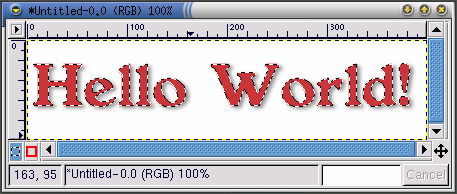 Adesso all'immagine deve essere aggiunto il testo reale. Primo, il colore attivo in primo piano deve essere cambiato. In questo caso, viene scelto un rosso (RGB 204 051 051). Quindi con il text tool attivo cliccate sull'immagine. Apparirà la finestra di dialogo Text Tool. Assicuratevi di aver selezionato le stesse configurazioni. Cliccate su OK per aggiungere un giallo "Hello World!" all'immagine e quindi spostatela nella posizione corretta.