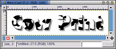 Il modo più semplice per farsi un'idea di cosa Script-Fu riesce a fare è provarlo. Dalla Toolbox cliccate su Xtns => Script-Fu per visualizzare il menu di Script-Fus. Per esempio se scegliete Xtns => Script-Fu => Logos => Bovination, vedrete la finestra di dialogo Script-Fu: Logos/Bovination. Potete cambiare gli Script Argument; in questo caso, tutto ciò che cambiamo è il testo. Quando cliccate su OK, vedrete GIMP applicare una serie di filtri e la nuova immagine mostrerà cosa ha creato Script-Fu.