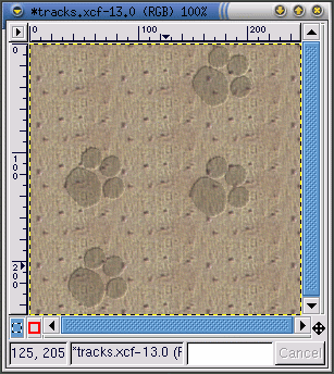 La prima impronta di zampa viene copiata nella nuova immagine con Ctrl-V. L'impronta viene spostata quindi nella posizione desiderata. Dopo averla sistemata correttamente, una seconda copia della pawprint viene inserita nell'immagine. Gli stessi passi devono essere eseguiti per la terza e la quarta pawprint. Se avete sbagliato ad effettuare gli spostamenti, potete sempre utilizzare Ctrl-Z per provare ancora.