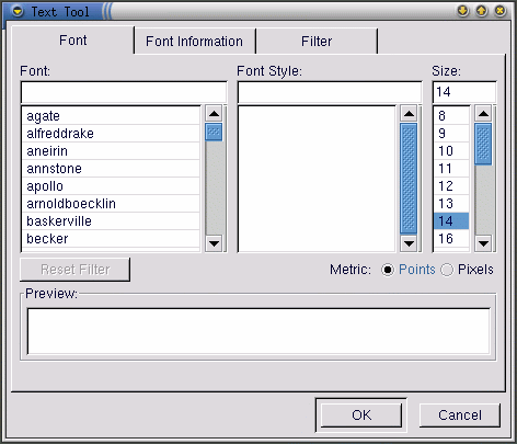 Cliccate sul text tool nella Toolbox per selezionarla. Quindi cliccate sull'immagine apparirà la finestra di dialogo Text Tool come mostrato nella Figura 9-24.