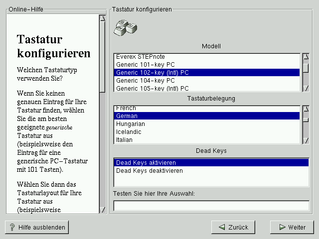 Wählen Sie dann den richtigen Belegungstyp für die Tastatur aus (z.B. Deutsch).