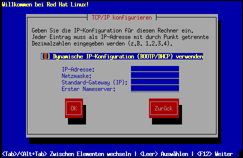 Wenn Sie eine Installation von CD-ROM durchführen und in Ihrem Computer eine Netzwerkkarte eingebaut ist, können Sie jetzt Ihre Netzwerkeinstellungen konfigurieren.