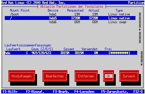 Disk Druid ist das Partitionierungstool, das in Red Hat Linux 7.0 verwendet wird. Die Funktionen von Disk Druid sind für eine typische Red Hat Linux Installation völlig ausreichend - nur ganz außergewöhnliche Konfigurationen können mit diesem Tool nicht gemeistert werden.