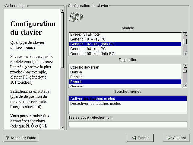 Sélectionnez le modèle le plus adapté à votre système (voir Figure 5-3). A défaut de correspondance exacte, sélectionnez le modèle générique correspondant le mieux à votre type de clavier (par exemple, Clavier PC générique 101 touches).