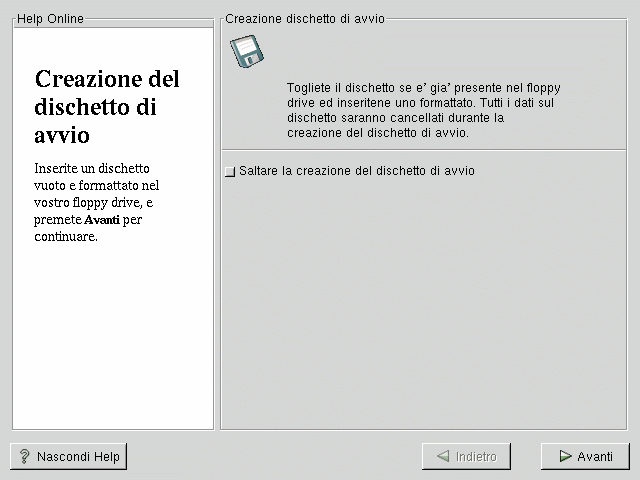 | Indietro | Capitolo 5. Installazione di Red Hat Linux | Avanti |