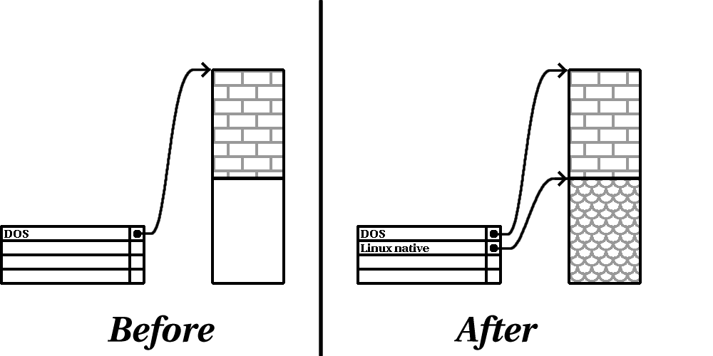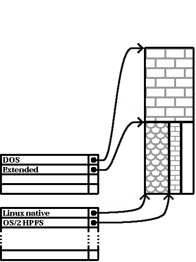Mit der Zeit wurde natürlich klar, dass vier Partitionen nicht ausreichen. Mit zunehmender Kapazität der Festplatten wuchs die Wahrscheinlichkeit, dass vier Partitionen in üblicher Größe konfiguriert werden konnten und immer noch Platz auf der Festplatte frei war. Es musste ein Weg gefunden werden, mehr Partitionen zu erstellen.