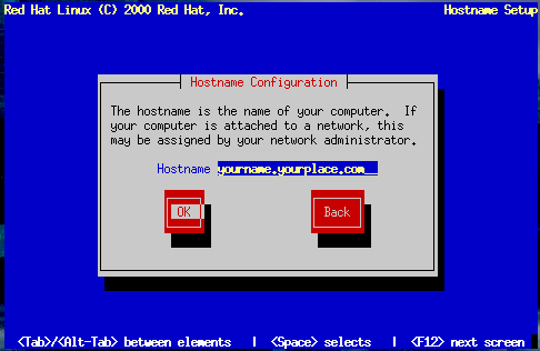 La ventana Hostname Configuration le guía para introducir el nombre de su máquina (llamada hostname).