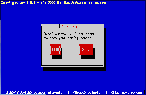Si está efectuando una instalación en modo workstation o personalizada y prefiere instalar el sistema X Window, será iniciada la utilidad Xconfigurator que le dará la oportunidad de configurar la X server para el sistema. Si está efectuando una instalación de tipo servidor o ha preferido no instalar el sistema X Window, pase a la sección de nombre Completar la Instalación.