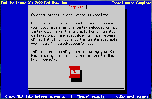 Félicitations ! L'installation de Red Hat Linux est terminée !