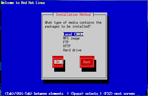 Red Hat Linux peut être installé à l'aide de l'une des méthodes suivantes :