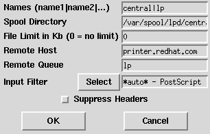 Si vous avez besoin d'un nom d'utilisateur et d'un mot de passe pour une file d'attente d'impression SMB (LAN Manager) ou NCP (NetWare), ils sont stockés cryptés dans un script local. Donc, il est possible pour une autre personne d'apprendre le nom d'utilisateur et le mot de passe. C'est pourquoi il est souhaitable que le nom d'utilisateur et le mot de passe relatifs à l'utilisation de l'imprimante diffèrent de ceux relatif au compte utilisateur sur le système Red Hat Linux local, de sorte que le seul compromis de sécurité possible serait une utilisation non autorisée de l'imprimante. S'il y a des partages de fichier à partir du serveur SMB, il est souhaitable qu'ils utilisent également un mot de passe différent de celui relatif à la file d'attente d'impression. |