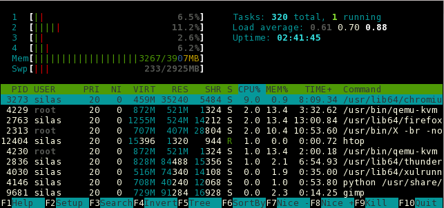 PID PPID CPU TASK ST %MEM VSZ RSS COMM